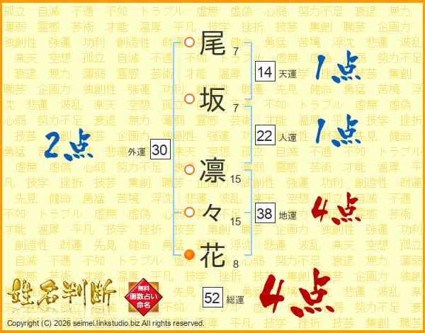 尾坂凛々花さんの総運は52画の4点!