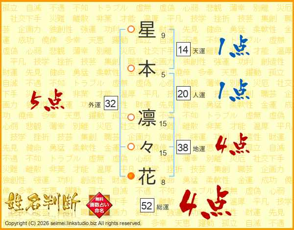 星(9画)本(5画) 凛(15画)々(15画)花(8画)