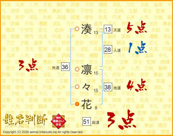 湊凛々花さんの総運は51画の3点!