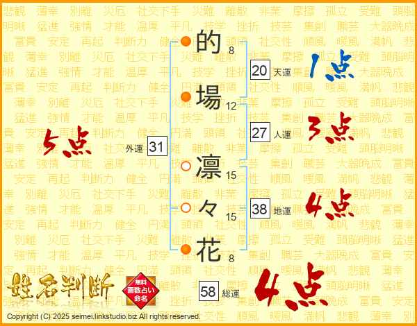 的(8画)場(12画) 凛(15画)々(15画)花(8画)