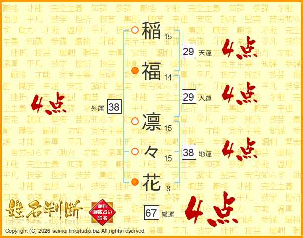 稲福凛々花さんの外運は38画の4点!