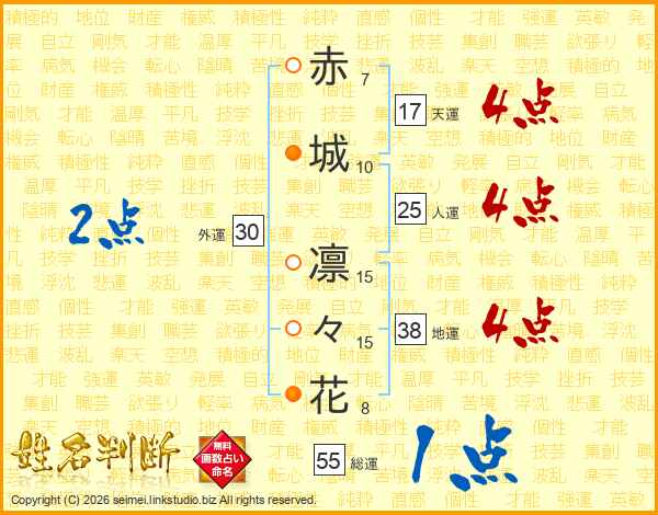 赤城凛々花さんの総運は55画の1点!