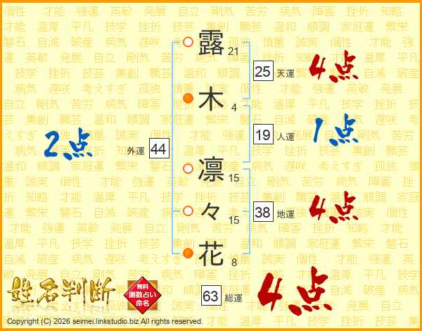 露(21画)木(4画) 凛(15画)々(15画)花(8画)