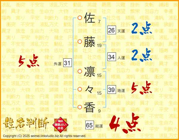 佐藤凛々香さんの総運は65画の4点!