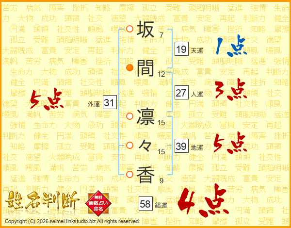 坂間凛々香さんの総運は58画の4点!