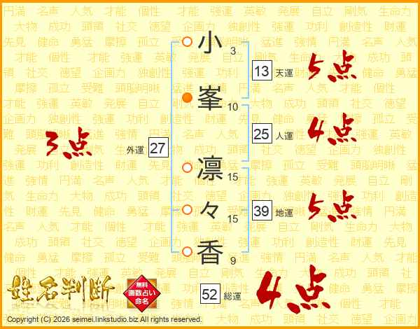 小(3画)峯(10画) 凛(15画)々(15画)香(9画)