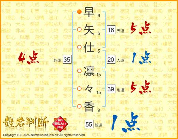 早(6画)矢(5画)仕(5画) 凛(15画)々(15画)香(9画)