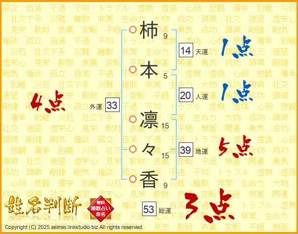 柿本凛々香さんの外運は33画の4点!