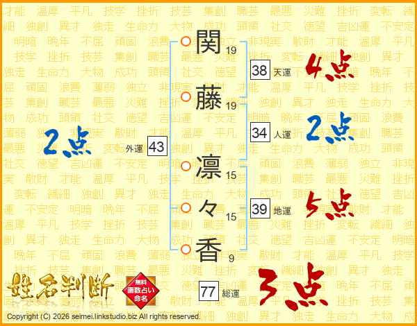 関(19画)藤(19画) 凛(15画)々(15画)香(9画)