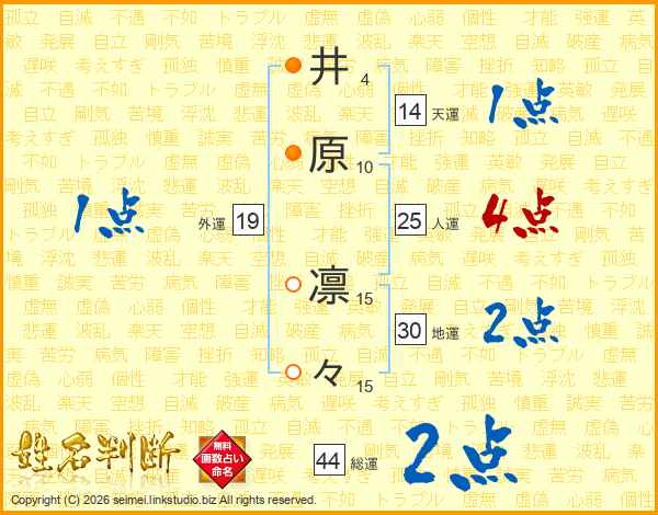 井原凛々さんの総運は44画の2点!