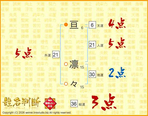 亘凛々さんの総運は36画の3点!