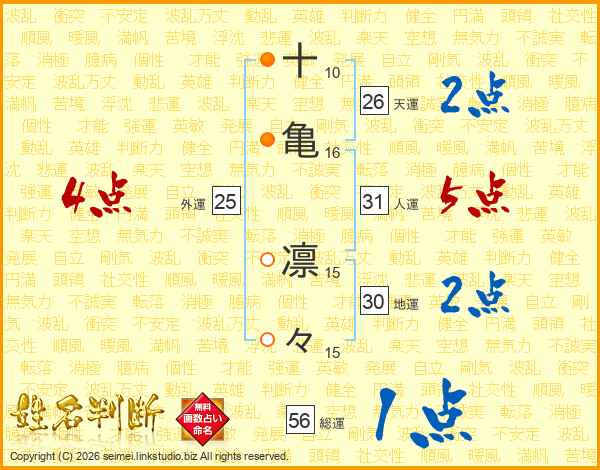 十亀凛々さんの天運は26画の2点!
