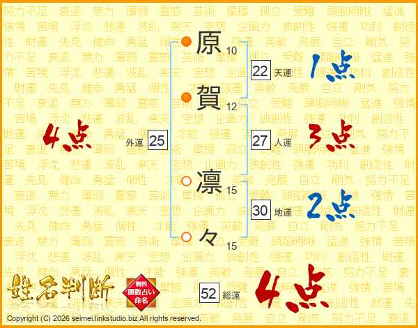 原賀凛々さんの総運は52画の4点!