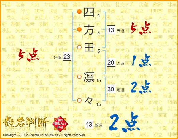四方田凛々さんの総運は43画の2点!