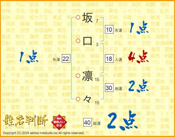 坂(7画)口(3画) 凛(15画)々(15画)