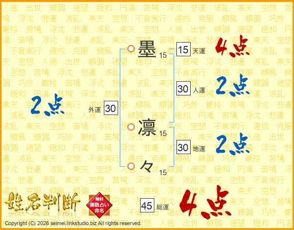 墨凛々さんの総運は45画の4点!