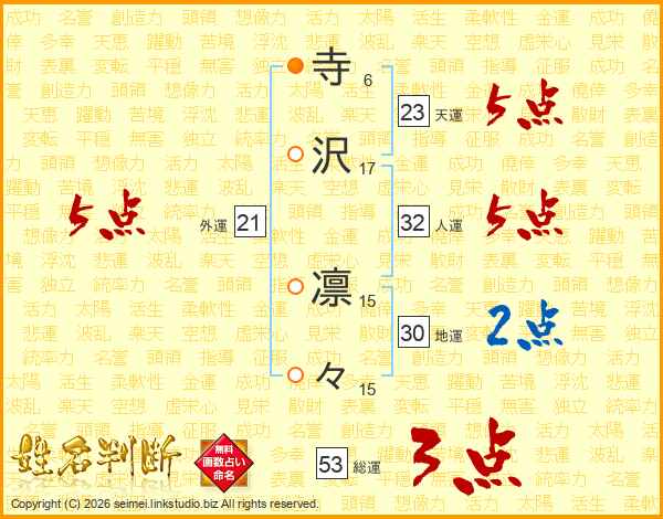 寺(6画)沢(17画) 凛(15画)々(15画)