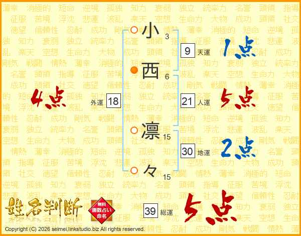 小西凛々さんの総運は39画の5点!
