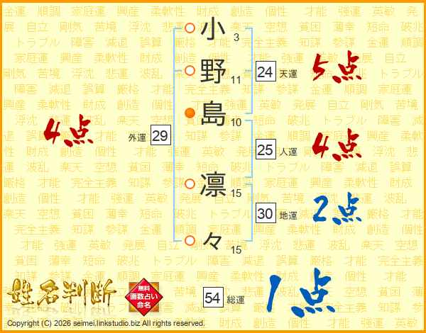 小野島凛々さんの総運は54画の1点!