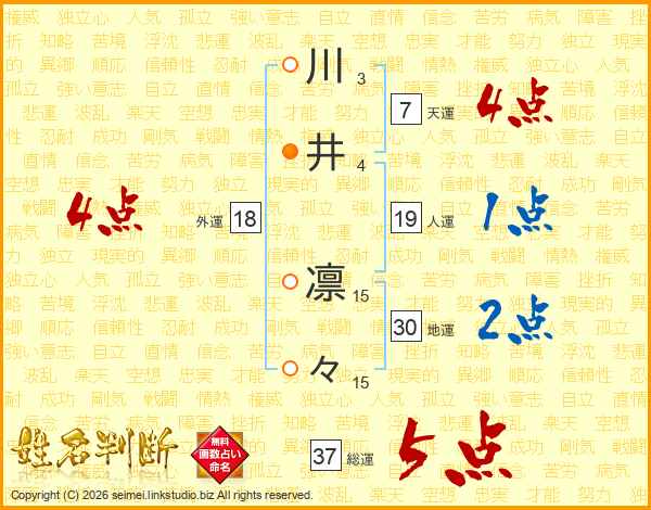 川井凛々さんの総運は37画の5点!