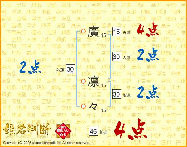 廣凛々さんの地運は30画の2点!