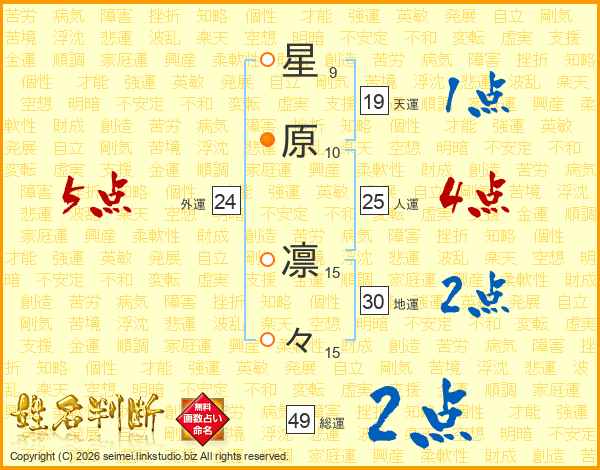 星原凛々さんの総運は49画の2点!