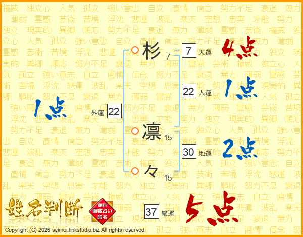 杉凛々さんの総運は37画の5点!