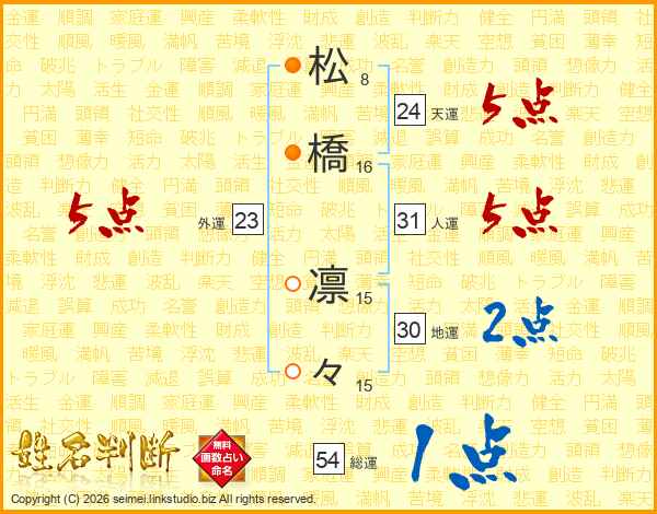 松(8画)橋(16画) 凛(15画)々(15画)