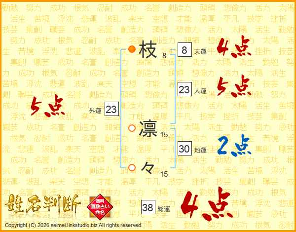 枝凛々さんの総運は38画の4点!