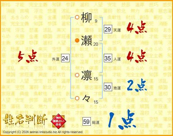 柳瀬凛々さんの総運は59画の1点!