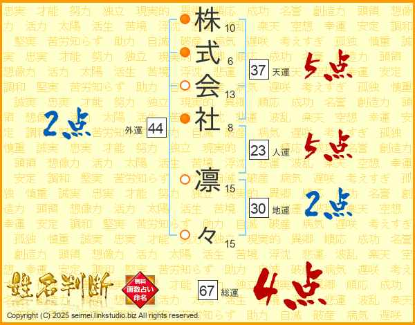 株(10画)式(6画)会(13画)社(8画) 凛(15画)々(15画)