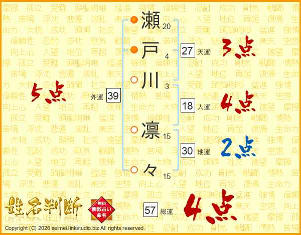 瀬戸川凛々さんの外運は39画の5点!