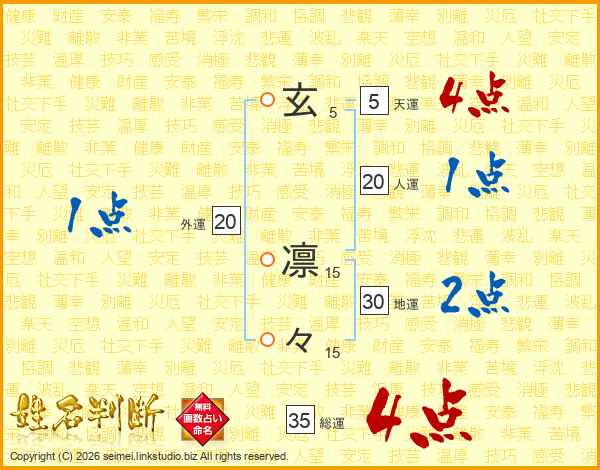 玄凛々さんの総運は35画の4点!