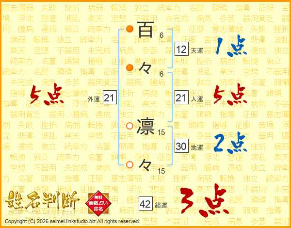 百々凛々さんの外運は21画の5点!