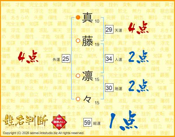 真藤凛々さんの総運は59画の1点!
