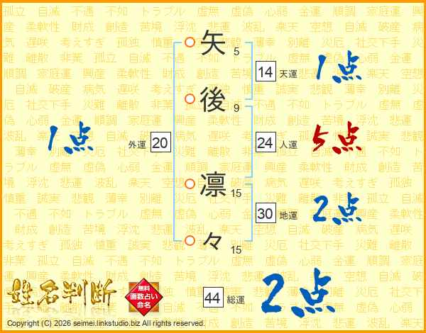 矢後凛々さんの総運は44画の2点!