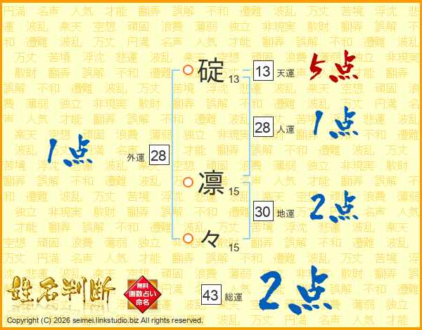 碇凛々さんの天運は13画の5点!