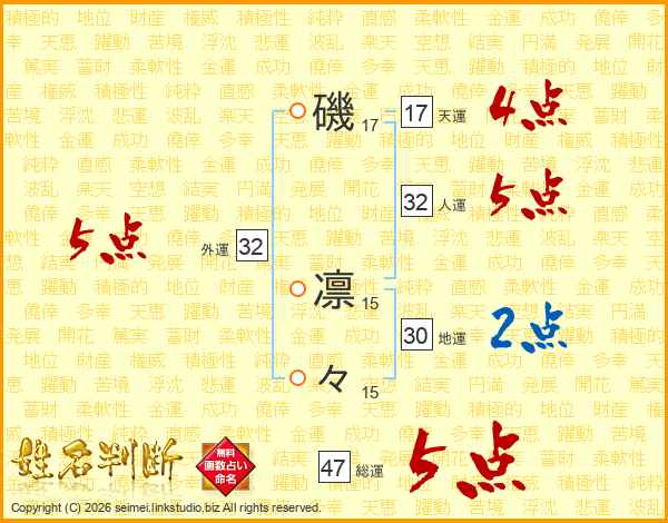 磯凛々さんの外運は32画の5点!