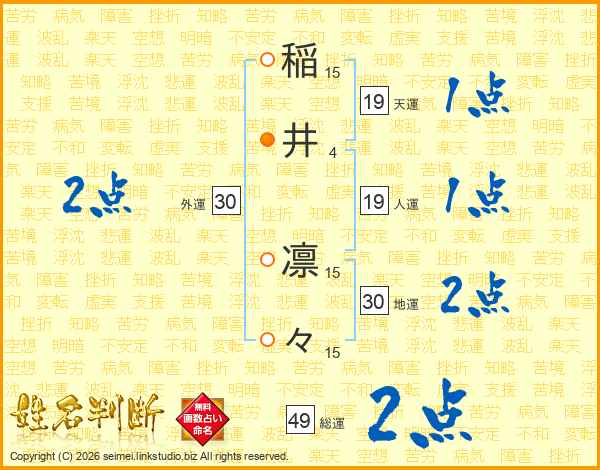 稲(15画)井(4画) 凛(15画)々(15画)