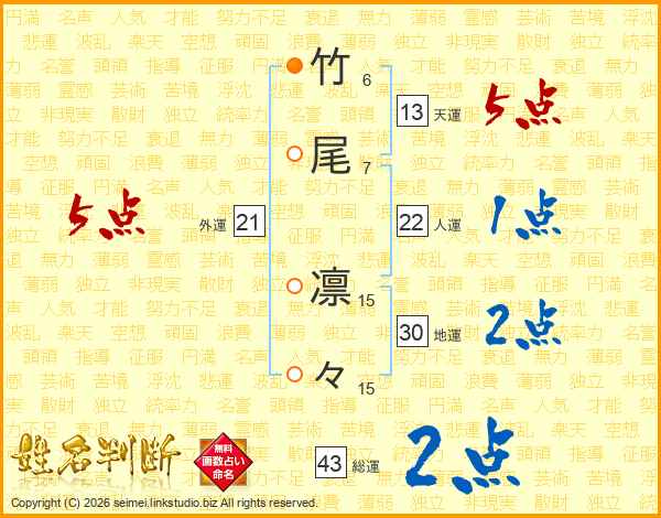 竹尾凛々さんの外運は21画の5点!