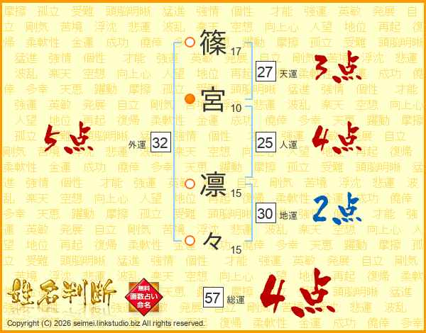 篠宮凛々さんの外運は32画の5点!