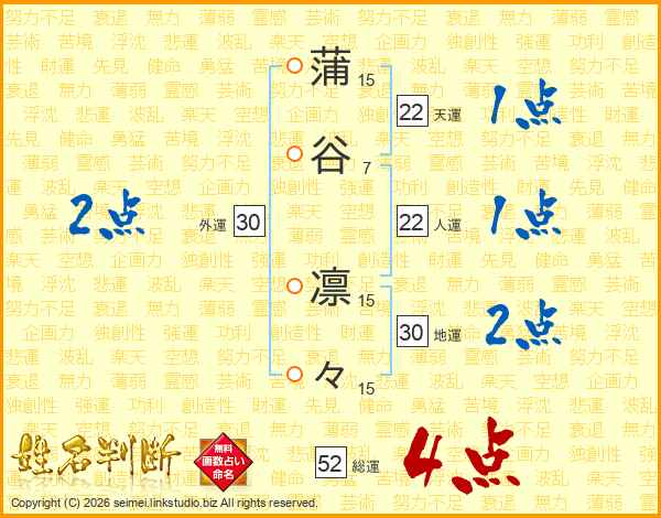 蒲谷凛々さんの総運は52画の4点!