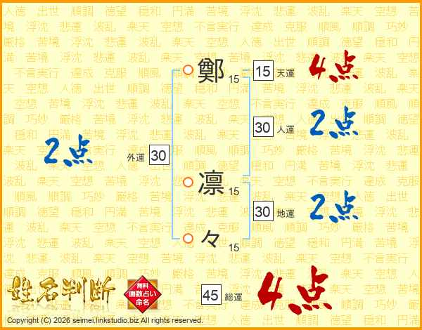 鄭凛々さんの総運は45画の4点!