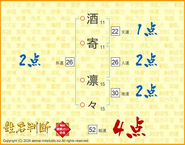 酒(11画)寄(11画) 凛(15画)々(15画)