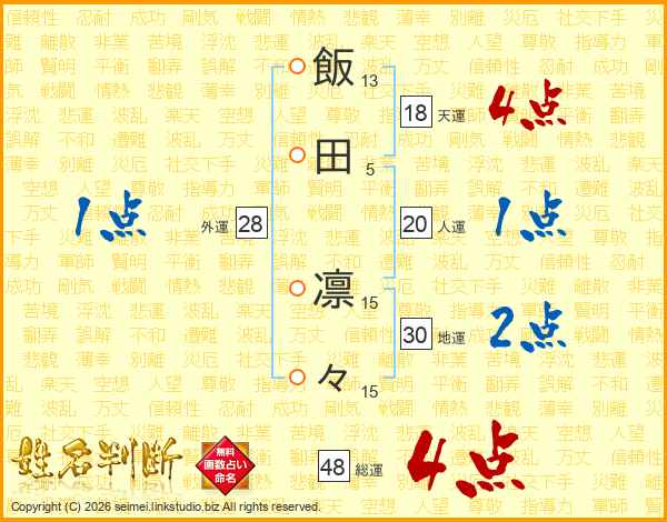 飯田凛々さんの総運は48画の4点!