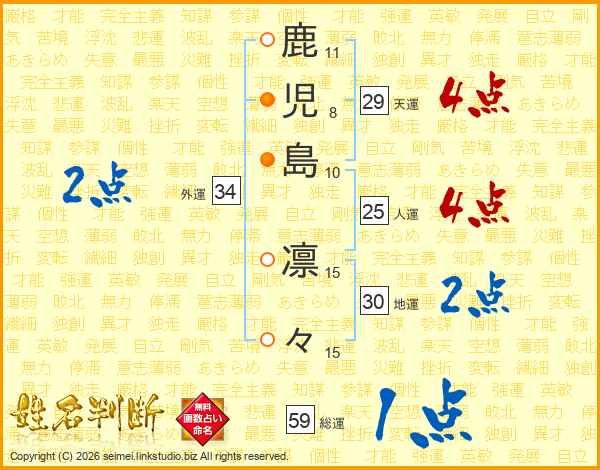 鹿児島凛々さんの人運は25画の4点!