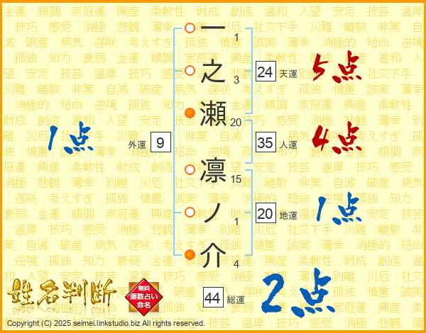 一(1画)之(3画)瀬(20画) 凛(15画)ノ(1画)介(4画)