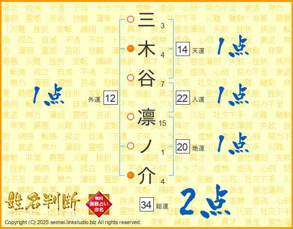 三(3画)木(4画)谷(7画) 凛(15画)ノ(1画)介(4画)