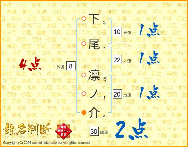 下尾凛ノ介さんの総運は30画の2点!