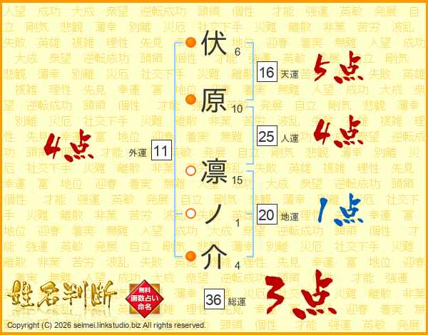 伏(6画)原(10画) 凛(15画)ノ(1画)介(4画)